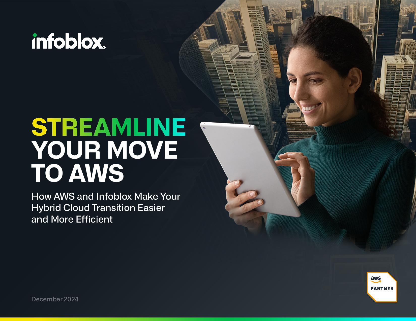 Download our AWS e-book to explore how Infoblox’s unified DNS, DHCP and IP address management services help organizations facilitate a faster, smoother and more secure transition to AWS.