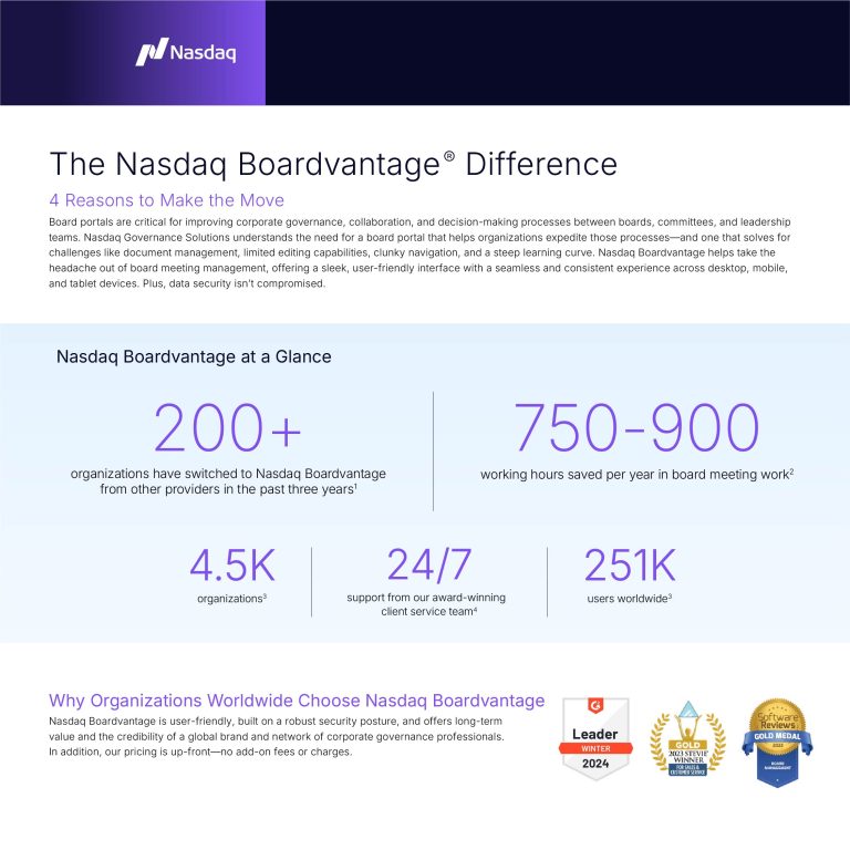 Nasdaq Boardvantage® Board Management Software The software that empowers your board, from a name you trust Nasdaq Boardvantage® enhances board...