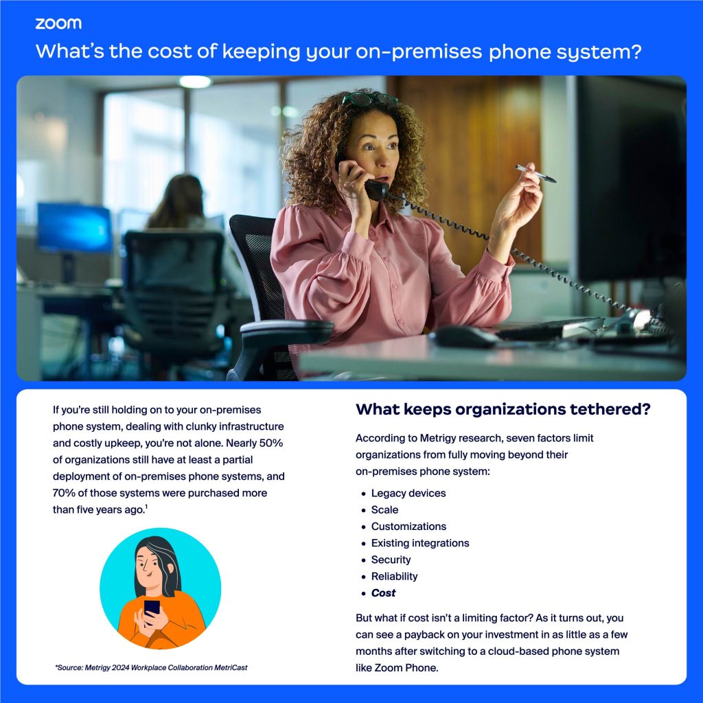 To find out, Zoom commissioned Metrigy Research in 2025 to conduct a benchmark Total Cost of Ownership (TCO) study comparing the TCO of Zoom Phone with the TCO of maintaining organizations’ premises-based phone systems. The results may surprise you.